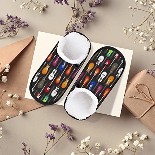 AUUXVA Music Colorful Guitar Travel Plush Slipper for Women Men, Guitar Oil Painting snug Shoes Non-slip Cotton Plush Shoes Indoor Winter Slippers gentle Memory Foam Slipper with Faux Fur Lining
