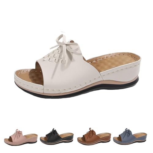 Wedge Sandals for Women 2025 Summer Arch Support Orthopedic Slippers, Bow Knot Decor Fish Mouth Sandals Open Toe Slip on Slippers Casual Walking Beach Slipper whole Day Comfort