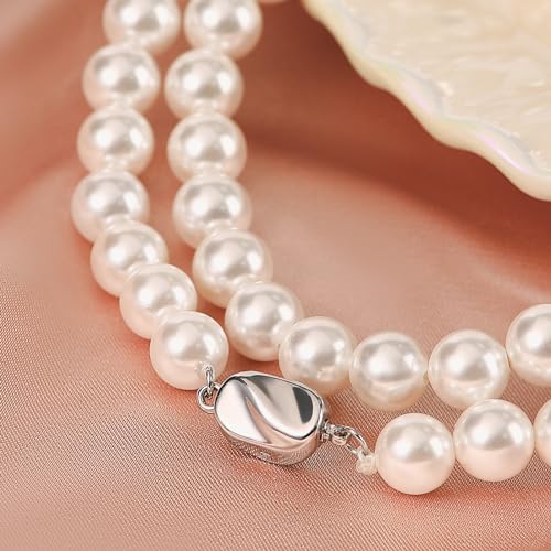 Item width: 2 inchesMaterial: Shell PearlMetal type: Sterling SilverClasp type: Lobster Clasp【 retro Off-Round Pearl Necklace Set 】 Elegant 8mm Round White Shell Pearl Jewelry Set, Includes Bracelet and Stud Earrings with 14K Gold, 3 piece set (18 inch necklace, 7 inch bracelet, matching stud earrings)【 Exquisite Craftsmanship 】 Carefully double knotted between each pearl; Finished with sturdy rose-shaped clasps; This fine pearl jewelry is a symbol of wisdom and is believed to offer protection and attracts good luck and wealth.【 Fit Almost Any Occasion 】 Packed in a gift box, perfect gift for your loved ones on holidays, Birthday, Christmas, Valentine's Day, Mother's Day, Anniversary, Wedding, Engagement, Graduation, Hanukkah, and June Birthstone.【 Hight Quality 】 This Pearl Set uses only sophisticated, handpicked shell pearls, ensuring the luster, quality, color and cleanliness of the pearls, fully represent the finest work in our jewelry selection, so the special one who wears them, shines ever so elegantly.【 Tips 】 Pearls are a chemical and an organic gem that require specialized care. They deteriorate in contact with chemicals like household cleaners, perfumes, cosmetics, and any hair care product of all kinds. A good rule of thumb is that your pearls are The Last Thing You Put On, when dressing, and The First Thing You Take Off, when you get home. The surface of a pearl is soft and can be easily damaged, store it inside a well made jewelry box for safe keeping. Perfect for everyday use. premium materials and excellent craftsmanship ensure long-lasting durability.