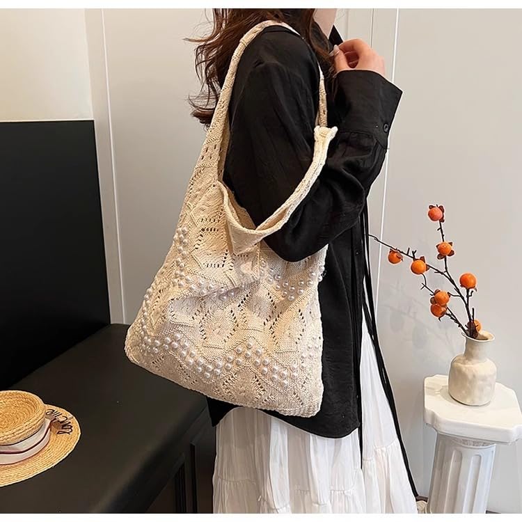 Fabric type: TeryleneOrigin: ImportedClosure type: Open TopPremium Craftsmanship: Crafted from high-quality, lightweight, and durable materials, One Side is Inlaid with white beads this crochet beach bag is portable and foldable without sacrificing sturdiness.This cute beach bag, perfect for seaside getaways and daily use. Durable sewing and exquisite workmanship make it a sophisticated and practical choice for women and girls.Elegant Summer Essential: The solid colors and intricate crochet detail elevate this tote to a trendy summer accessory and fashion statement. Whether at the beach, a party, shopping, or date night, this bag is a versatile and chic addition to your wardrobe.Spacious & Practical: With ample room for essentials like an iPad, wallet, sunglasses, and more, this large capacity knit beach bag ensures all your belongings stay organized and secure.Versatile Boho Chic: The retro and casual boho style of this tote bag makes it perfect for travel, shopping, beach outings, and summer vacations. Its vintage aesthetic also makes it an ideal for birthdays, holidays, weddings, Valentine's Day, or any special occasion. Perfect for everyday use. superior materials and excellent craftsmanship ensure long-lasting durability.
