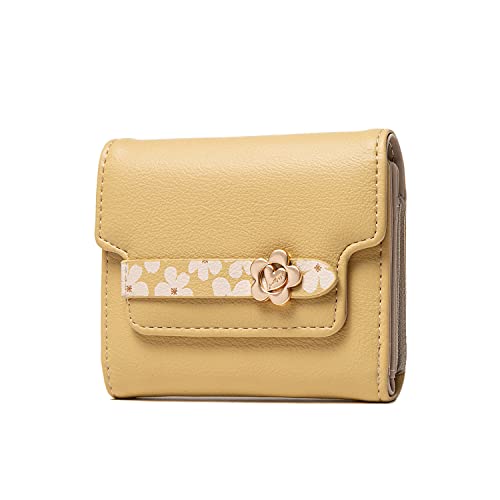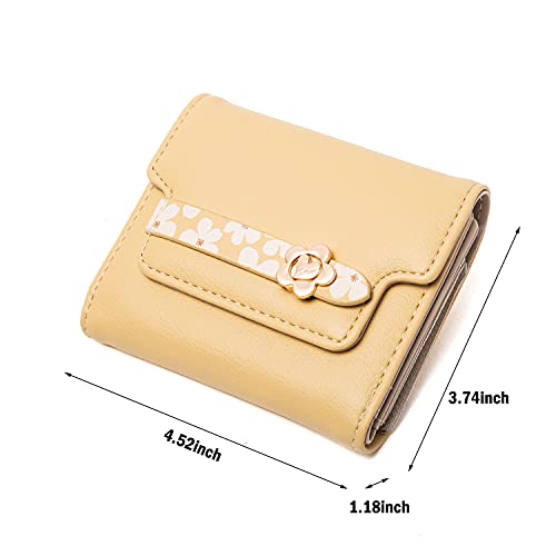 Wallets for Women Rfid Small Womens Wallet Trifold Flower Leather Ladies Wallet with Card Holder&Zipper Coin Purse (Yellow)