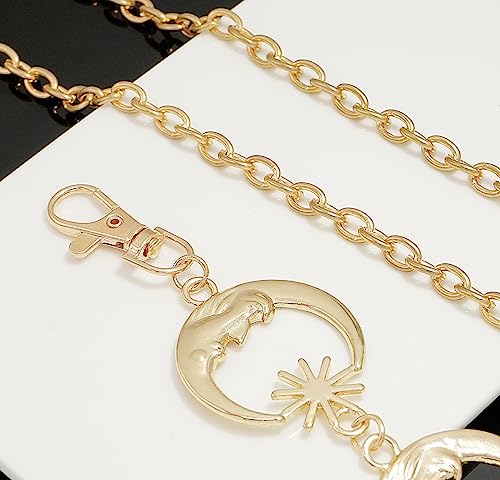 Waist Chain Belts for Women Metal Link Moon Star Body Chain Belt Ladies Waist Chain Belt for Jeans Dress
