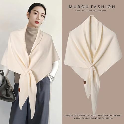 Women's Fashionable Triangle Shawl Scarf, Fleece Scarf Shawl Wraps with Loop Closure, Solid Color Pashmina Knitted Top
