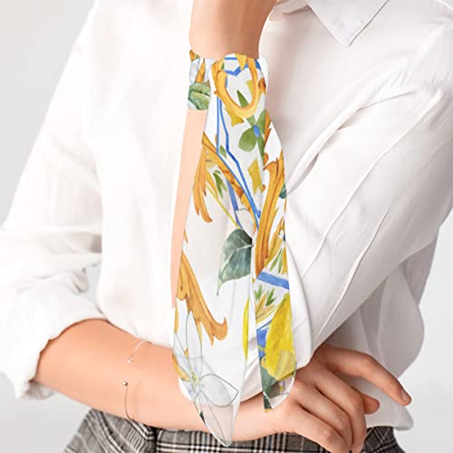 trending ! Lemon Plant Flowers Square Silk Hair Scarf for Women, Lightweight Summer Head Scarf for Girls Wedding Travel Yoga Handkerchief Shawl Sunscreen Scarves Hair Accessories 23.6 Inches