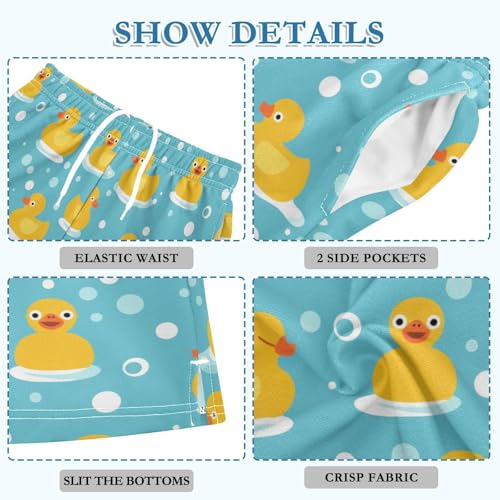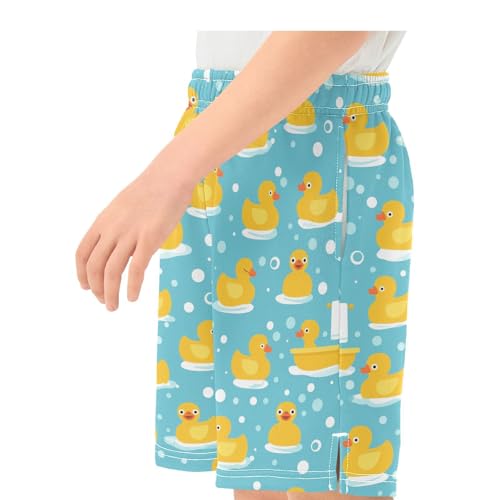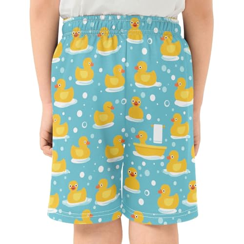Boys Athletic Shorts with Pockets Yellow Duck Duck Bubble Running Basketball Shorts for Youth Elastic Waist Size 7-8