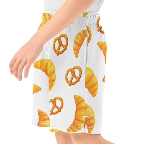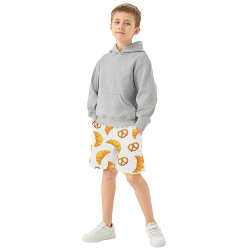 J JOYSAY Pretzel Food White Yellow Boys Athletic Shorts Kids Youth Casual Shotrs with Elastic Waistband Pockets