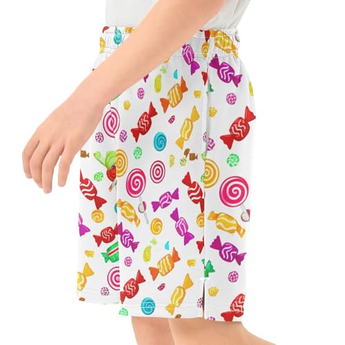 Colorful Candy Athletic Shorts with Zipper Pockets, Youth Boys Athletic Running Shorts for Summer