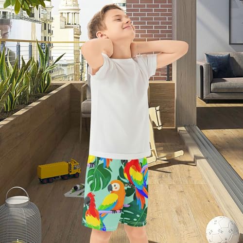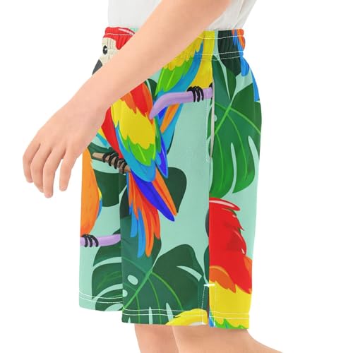 trending ! J JOYSAY Macaw Monstera Branch Aqua Boys Athletic Shorts Kids Youth Casual Shotrs with Pockets Elastic Waistband