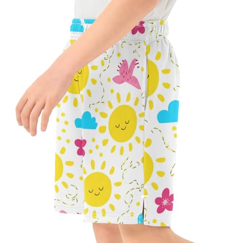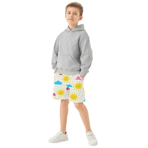 J JOYSAY Sun Flower Cloud White Boys Athletic Shorts Kids Youth Casual Shotrs with Elastic Waistband Pockets