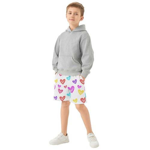 trending ! J JOYSAY Smiling Heart Shape White Boys Athletic Shorts Kids Youth Casual Shotrs with Elastic Waistband Pockets
