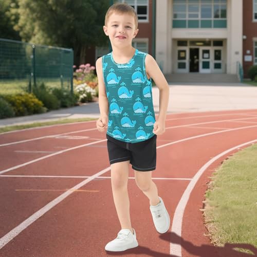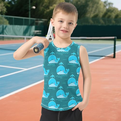 Cartoon Whale Water Teal Boys Tank Tops Quik Dry Toddler Tank Top Undershirts T-Shirts for Kids,3T
