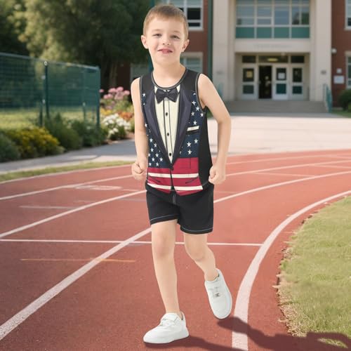 Boys Tank Top Shirts Retro American Flag Tuxedo Sleeveless T-Shirts Crew Neck for Kids Clothing Children