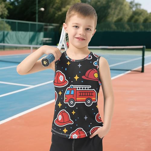 JUNZAN Firefighter Fire Hose Hydrant Truck Boys Tank Tops Sleeveless Toddler Vest Beach Clothes for Beach Travel Sports 3T