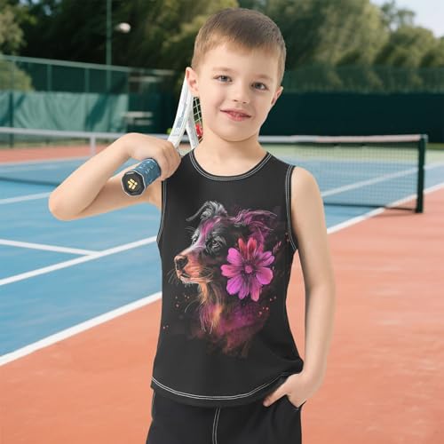 trending ! Boys Tank Top Shirts Dog Print Colorful Flower Sleeveless T-Shirts Crew Neck for Kids Clothing Children