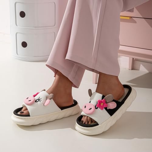 • DESIGN FEATURES: Adorable cow-themed slippers with 3D ears, nose, and black & white pattern, exceptional for adding a playful touch to your loungewear