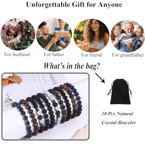 trending ! Jewdreamer 10PCS Tiger Eye Bracelet For Men 8MM Natural Stone Beads Bracelet Set Stretch Lava Rock Bracelets Adjustable Black Crystal Beaded Bracelet for Men Women Gifts