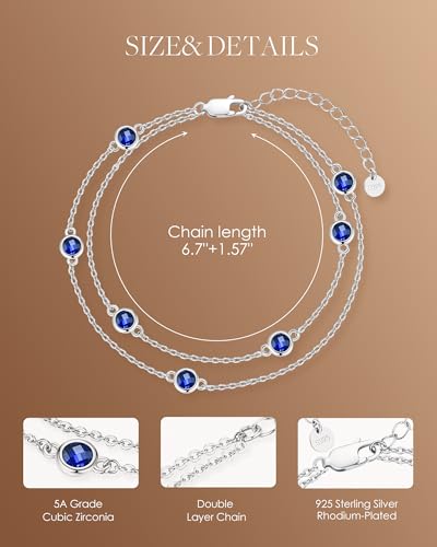 trending ! LOUISA SECRET Birthstone Bracelets for Women, 925 Sterling Silver Charm Link Double Strand Bracelet, Birthday Anniversary Christmas Jewelry Gifts for Wife Girlfriend Mother her…