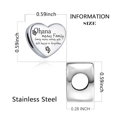 Material: Cubic ZirconiaMetal type: Stainless SteelGem type: Crystals♥Love Heart Charm♥ With Ohana Means Family, family means nobody gets left behind or forgotten engraved on this charm, you're sure to get noticed when you wear this eye-catching charm.♥Best Friend Gifts♥ This charm makes the best gift for your loved ones on anniversary, birthday, graduation, Valentine's Day, Mother's Day, Halloween, Christmas, New Year, etc.♥FEATURE♥ The love heart charm of the hole is 4.5mm-5.0mm, which can compatible with Pandora Charms Bracelets and most U.S. or European bracelets.♥DESIGN CONCEPT♥ The design of heart charm is inspired by love. The delicate design makes charms look more layered.♥RONLLNA JEWELLRY♥ faultless Gifts for Christmas, Mother's Day, Valentine's Day, Graduation Gifts, Bridal Gifts or your other special occasion you would like to make memorable. Perfect for everyday use. premium materials and excellent craftsmanship ensure long-lasting durability.