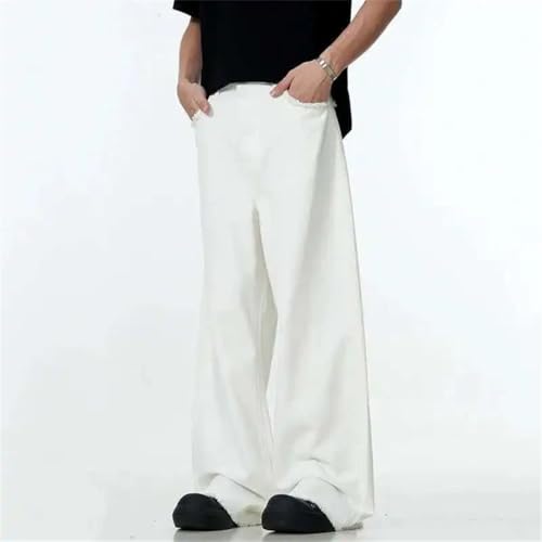Men's Denim Pants Solid Color Raw Edge Design American Trousers Straight Wide Leg Jeans