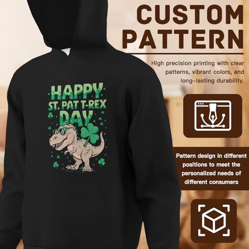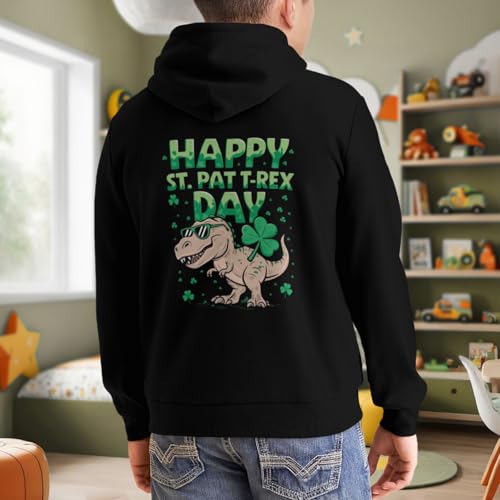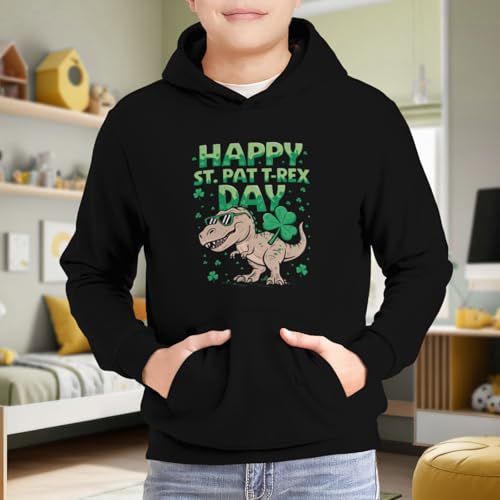 trending ! Kids Funny Happy St Pat Trex Day Dinosaur St Patricks Day Boys Girls Lightweight Kangaroo Pocket Fleece Hoodies