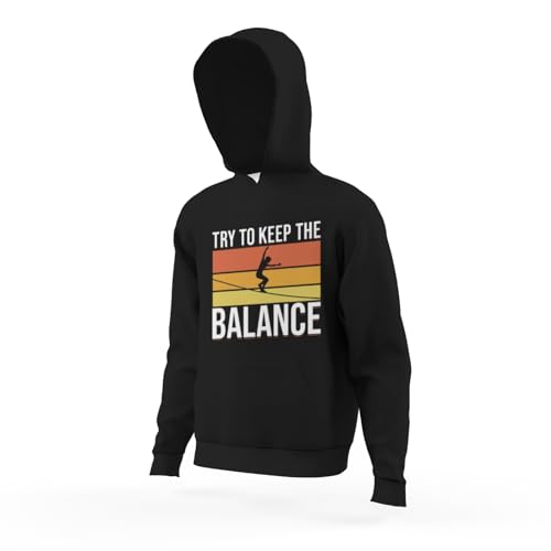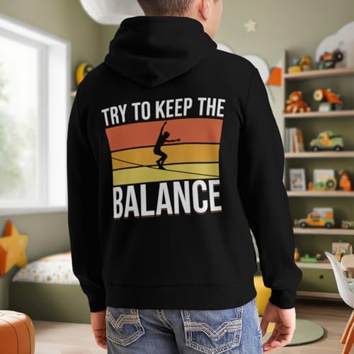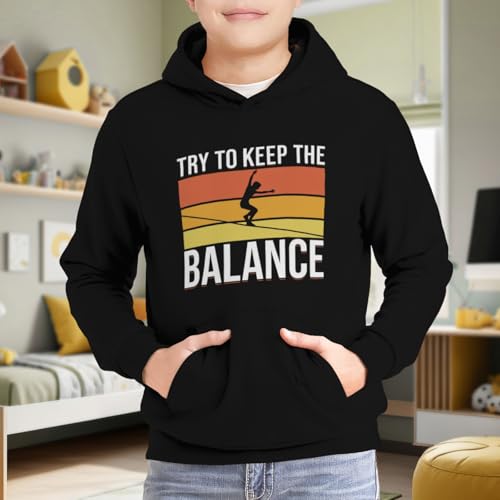 Kids Retro Slacklining Balance Boys Girls Lightweight Kangaroo Pocket Fleece Hoodies
