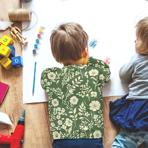 JUNZAN Autumn Flowers Carnation Peonies Sage Green Little Girls Pullover Hoodie Fleece Outerwear for Kids Camping 4T