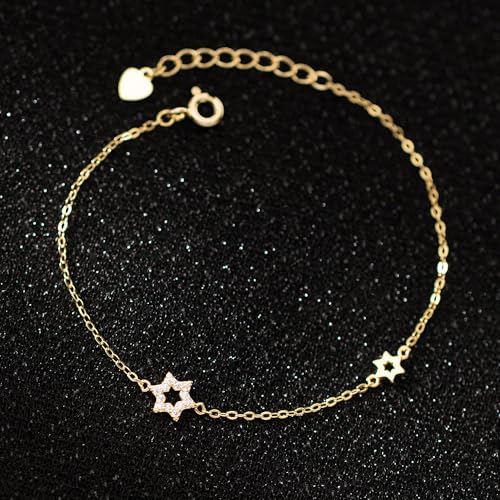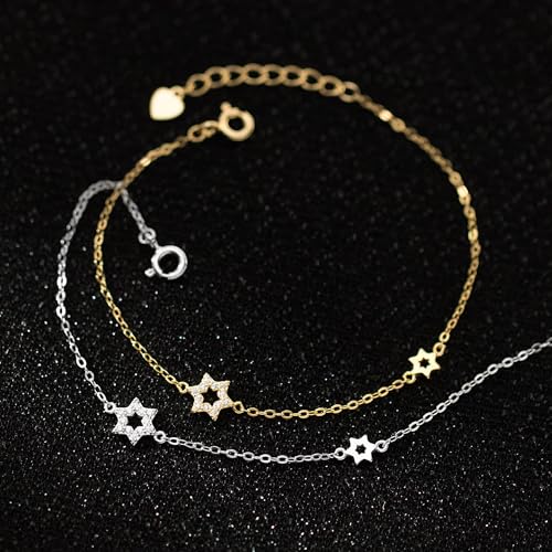 LOVECOM 14K Gold Plated Jewish Star of David Bracelet for Women 925 Sterling Silver Star Cubic Zirconia Link Charm Chain Bracelet Jewish Jewelry Birthday Gifts for Friend Daughter Mom