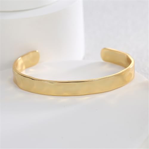 Material: MetalMetal type: BrassClasp type: CuffChain type: C-ChainGem type: No gemstoneHammered Cuff Bracelets: Gold bracelet is designed with irregular hammer patterns and highly polished, giving a retro and fashionable feel. charming and elegant, simple but fashionableComfortable Cuff Bracelet: Our gold cuff bracelet is made of high-quality stainless steel, exquisite and fashionable. Highly polished by hand, resulting in a stunning and glossy finishMinimalist Gold Bracelets: Geometric bracelet made of open cuffs, suitable for different wrist sizes. The fantastic bracelet is suitable for daily wear, also can match other accessory or jewelry to create your own styleGreat Gift: Giving it as a gift to your friends, sister and wife is also a good choice. Perfect for happy birthday, New Year, Valentine's Day, Mother's Day, Thanksgiving Day, Christmas, anniversary, wedding, graduationAfter Sales: To Ensure Your Complete Satisfaction, We Offer a 90-days return policy. Please don't hesitate to contact us whenever you have any concern about this item. We will do our best to promise you an enjoyable shopping! Perfect for everyday use. premium materials and excellent craftsmanship ensure long-lasting durability.