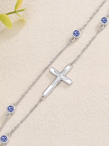 Dorunmo Cross Birthstone Bracelet Anklet for Women 925 Sterling Silver Birthday Jewelry for Wife Girlfriend Mom Her