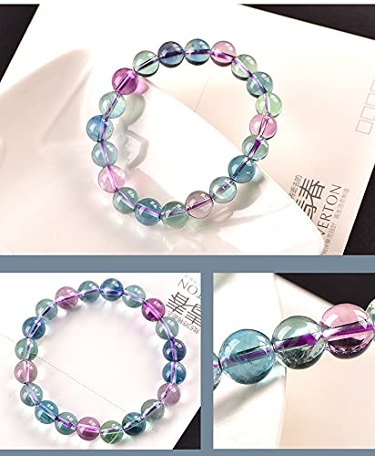 Natural Crystal Bracelet for Men Women Flourite Chakra Balancing Gem Feng Shui Bracelet Amulet for Healing Prosperity Positivity Spiritual Balance Good Luck,Level a,10mm