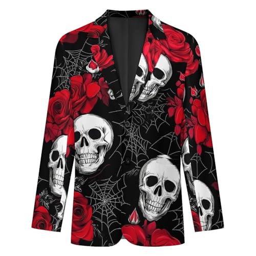 Rose Skulls Printed Men's Blazer Printed Button Suit Jacket Slim Sport Coat Blazers