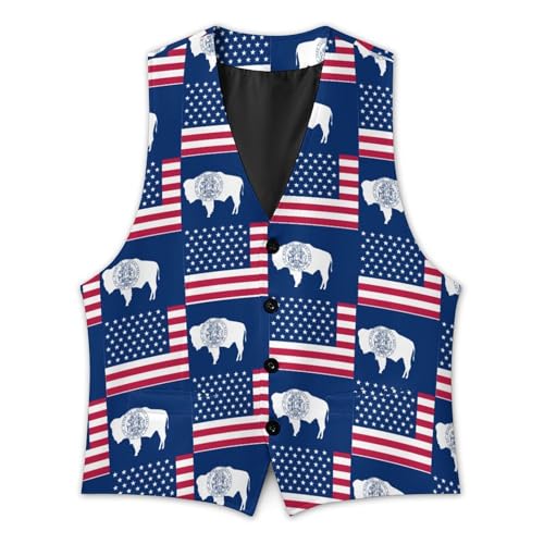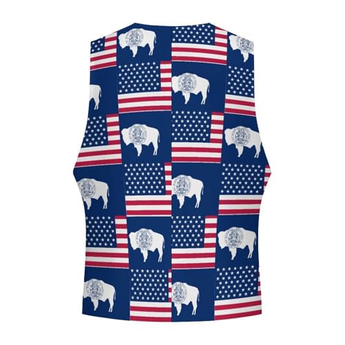Flag of Usa And Wyoming Suit Vest for Men Waistcoat Dressy V Neck Button Down Sleeveless Business Jacket Coat