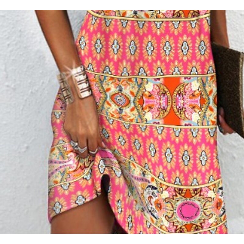 trending ! Women's Mini Dress Petite Dress Casual Dress Ethnic Dress Boho Dress Halter Neck Dress Fashion sophisticated up-to-date Vacation Daily Date Regular Fit Geometric Print Sleeveless Halter Neck Pink Summer Spring