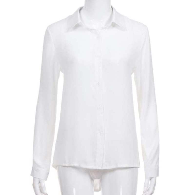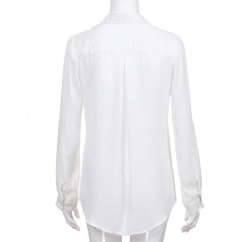 The blouse features a button-down front that adds a sophisticated touch to its overall look. Its simplicity is perfect for pairing with delicate jewelry to elevate your style. The shirt collar neckline adds an element of timeless elegance, making it a must-have addition to your wardrobe.