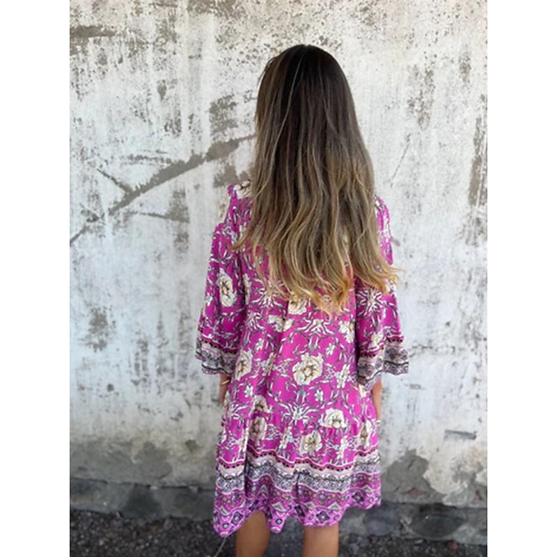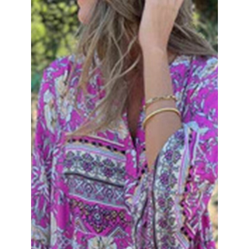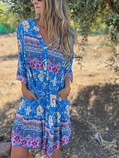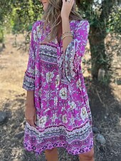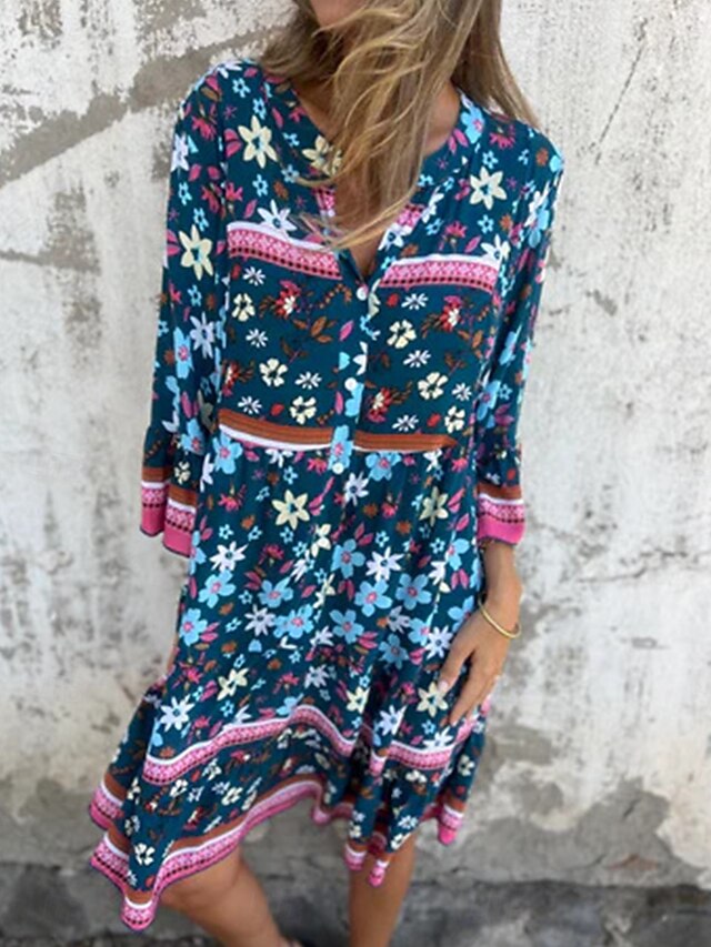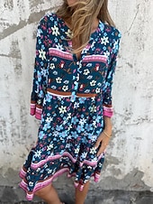 This Women's Midi Dress A Line Dress Boho Dress fashionable Casual Vacation Daily Regular Fit Floral 3/4 Length Sleeve V Neck Navy Blue Royal Blue Purple Spring Fall combines elegant design with practical functionality. Every detail has been carefully considered to ensure you get the best possible experience. The supreme construction means this product will serve you well for years to come.