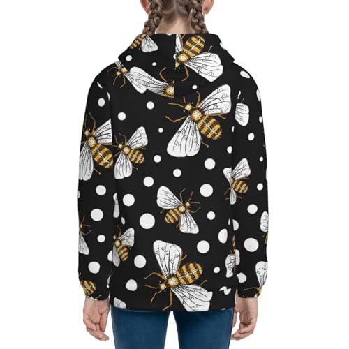 Honey Bees at Night Kids Pullover Hoodies Boys Zip Up Sweatshirts Girls Athletic Clothes with Pocket