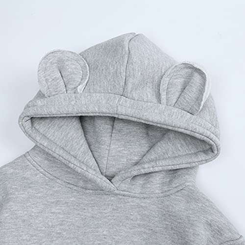 Toddler Baby Solid Color Bear Ear Hoodie Sweatshirt Tops Boys Girls Long Sleeve Hooded Pullover Coats for Toddlers Girls