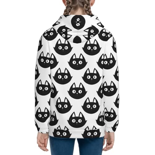 trending ! Black Cats Kids Pullover Hoodies Boys Zip Up Sweatshirts Girls Athletic Clothes with Pocket
