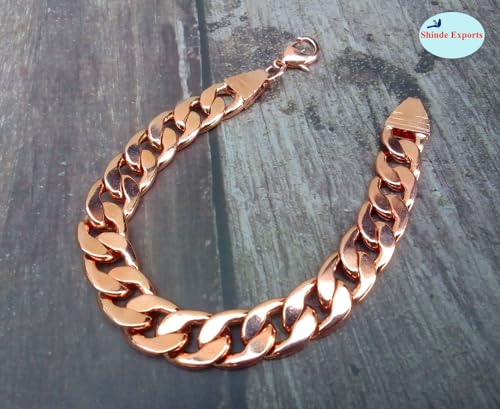 Material: CopperMetal type: CopperClasp type: S HookChain type: Link chainGem type: No gemstoneItem type name: BraceletsRELIABLE BRAND- SHINDE EXPORTS Provides superior copper chain bracelet with innovative design.LATEST DESIGN: copper chain bracelet for man and women Width 11mm, it weighs around 40gms. Length-8 inches, smooth Surface Comfort Fit copper braceletBEST QUALITY AND BEAUTY: All our copper chain link bracelet are classic, gorgeous and durable, and scratch resistant & Comfort Fit Design.IDEAL FOR GIFTING:These solid copper heavy mens chain link bracelets are a best option for gifting to loved ones on the occasions like wedding, anniversaries, Birthdays etc.HIGH STRENGTH: The strongest pure copper large solid heavy chain link bracelet bracelets ring in the marketDifferent designs are avaialble kindly select your choice before placing an order Perfect for everyday use. High quality materials and excellent craftsmanship ensure long-lasting durability.