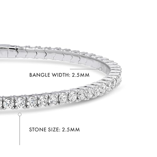 Material: Sterling SilverMetal type: Sterling SilverClasp type: Push ButtonChain type: Cable ChainGem type: Cubic ZirconiaItem type name: Bangle Bracelets925 Sterling Silver: This flexible bangle bracelet is crafted with fine solid sterling silver, stamped 925. Rhodium plated for enhanced durability and tarnish resistance.Nickel-Free: Designed with your comfort in mind, safe for sensitive skin, ensuring irritation-free wear.Timeless Design: Embrace refined luxury with our stunning openable bangle. Its flexible design ensures effortless wear. Style it solo for minimalist elegance or stack it with your favorite bracelets for a bolder look.Dazzling Radiance: Set with premium grade 3.66 ct.tw round cubic zirconia CZ (2.5mm) in prong setting. Chain measures 7 in length, 2.5mm in width. Push button clasp.Designed to Last: Berricle Zirconia is created in a way that truly replicates the cut, clarity and sparkle of a diamond. Beautifully packaged in a gift box. Perfect women jewelry gift for bridal wedding engagement, anniversary, birthday, Holidays. Perfect for everyday use. superior materials and excellent craftsmanship ensure long-lasting durability.