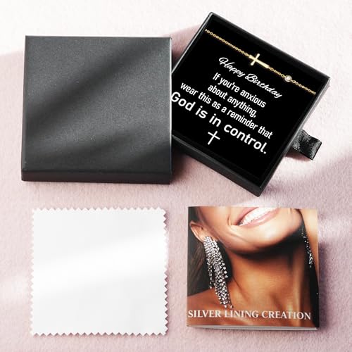 Birthstone Cross Bracelet for Women – Christian Gifts Birthday Gifts for Women, Baptism Gifts for Women, 18K Gold Plated, 5A Zirconia, Triple-Layered Finish, Size 6-8 ''