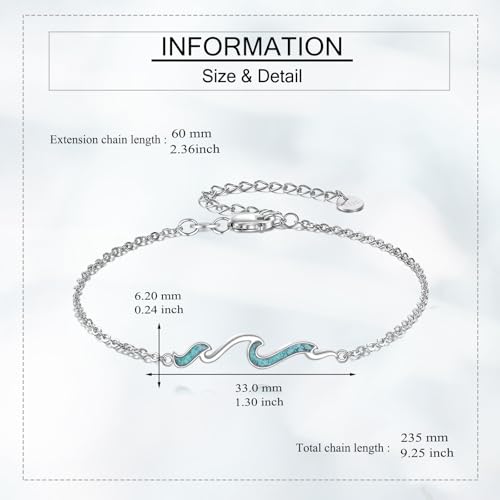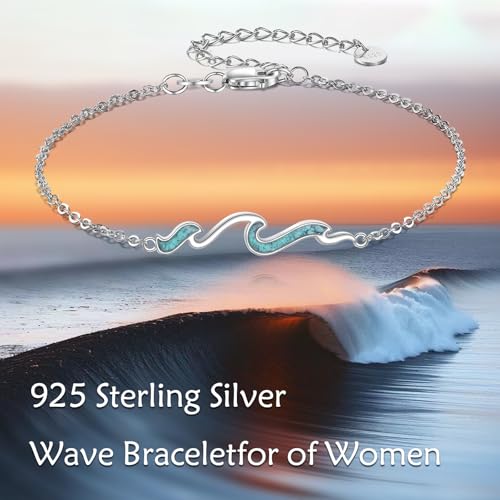 URONE Wave Bracelet 925 Sterling Silver Turquoise Wave Bracelet Ocean Beach Jewelry Gifts for Women