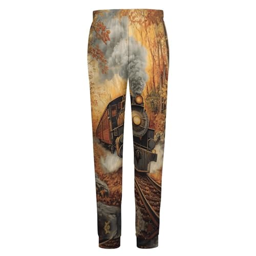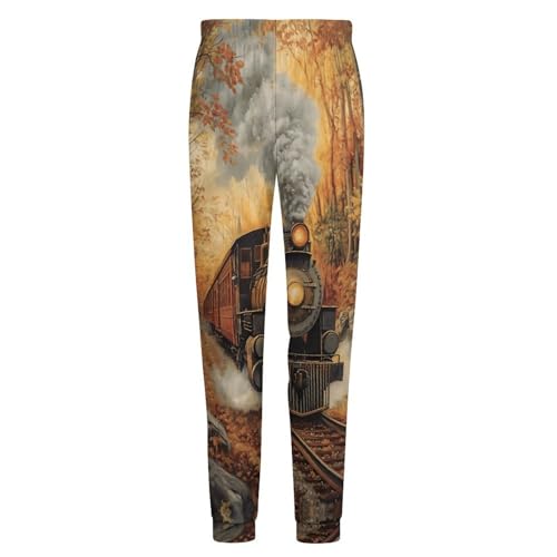 Vintage Steam Train Autumn Forests Men's Pajama Bottoms Sleep Lounge supple Comfy Pants Sleepwear