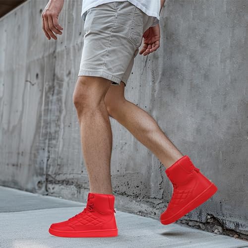 Soulsfeng Men's Women's High Top Sneakers Leather Ankle Boots Lace Up Walking Tennis Shoes