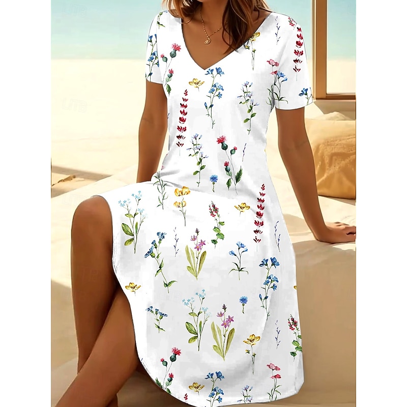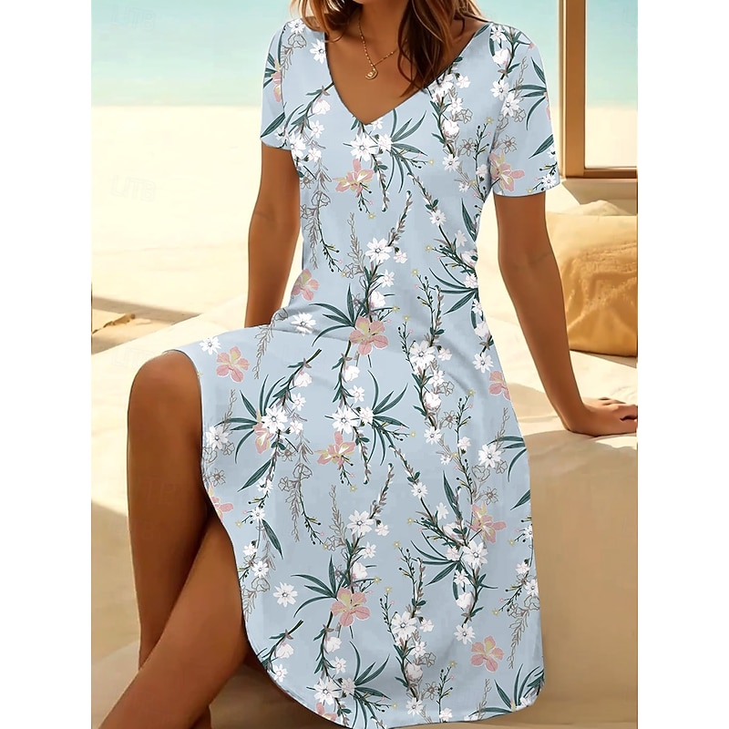 More information about Easter Women's Midi Dress T Shirt Dress Tee Dress Sundress A Line Dress Vacation Casual Beach Daily Holiday Beach Regular Fit Ombre Floral Graphic Short Sleeve V Neck White Pink Blue Sky Blue Summer