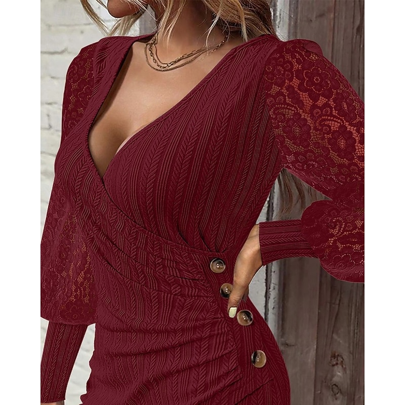 This Women's Work Dress Lace Dress Sheath Dress Elegant Daily Midi Dress Buttons V Neck Long Sleeve Plain Regular Fit Black Red Khaki Fall Winter S M L XL 2XL combines elegant design with practical functionality. Every detail has been carefully considered to ensure you get the foremost possible experience. The superior construction means this product will serve you well for years to come.