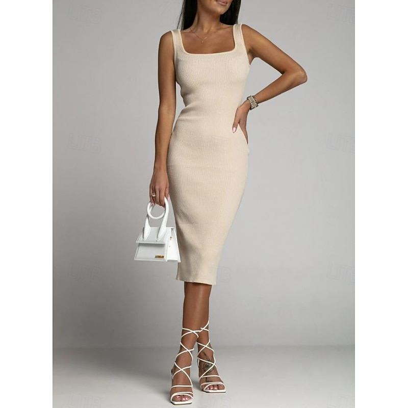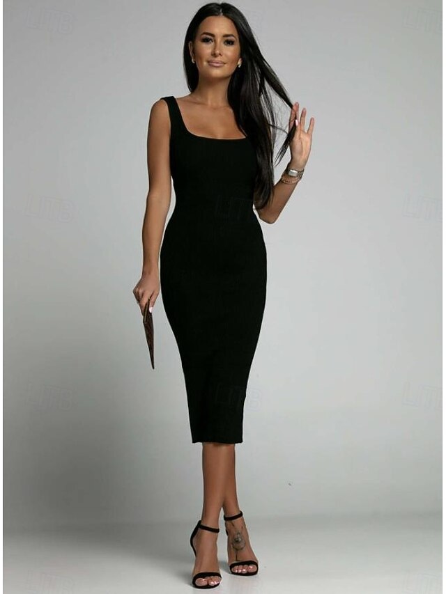 trending ! Women's Midi Dress Black Dress Cocktail Dress Formal Dress Plain Dress Casual Street Date Regular Fit Plain Sleeveless Crew Neck Black White Blue Apricot Summer Spring