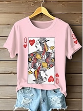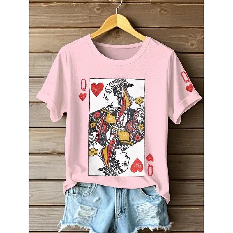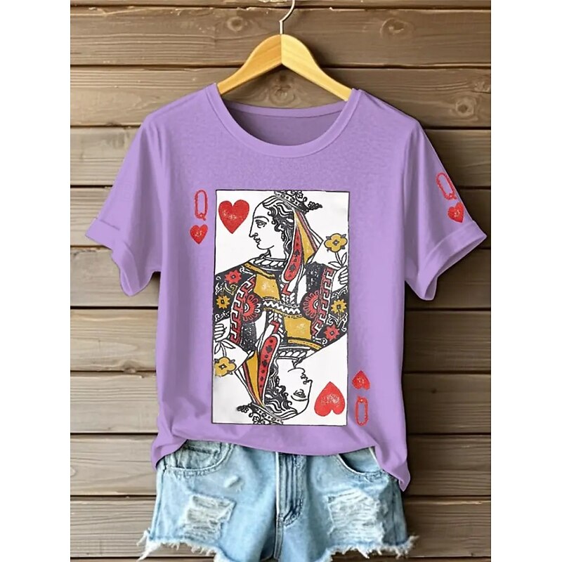 This Women's Poker Queen of Hearts T Shirt Graphic Letter Vintage fashionable Classic Short Sleeve Crew Neck Round Neck Regular Tops Daily Weekend Print Black White Pink Blue Purple Summer Spring combines elegant design with practical functionality. Every detail has been carefully considered to ensure you get the best possible experience. The supreme construction means this product will serve you well for years to come.