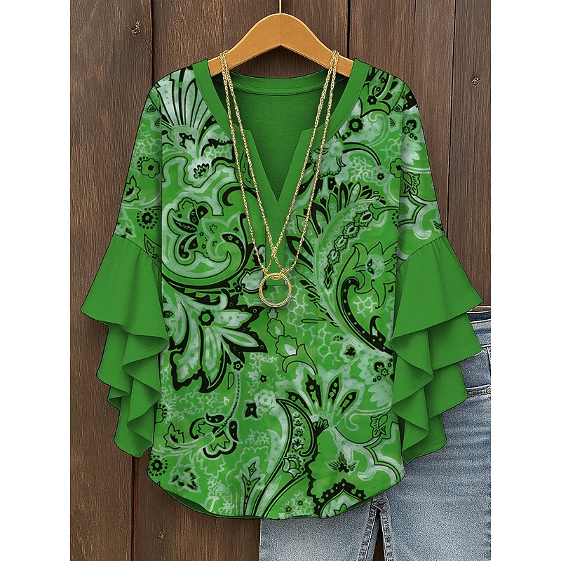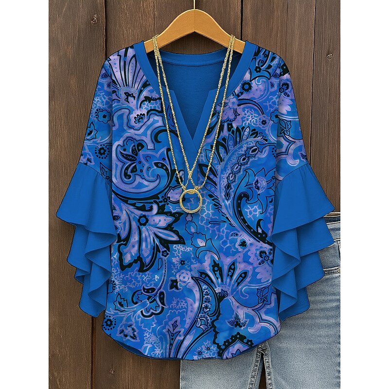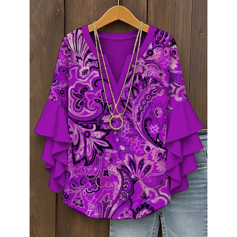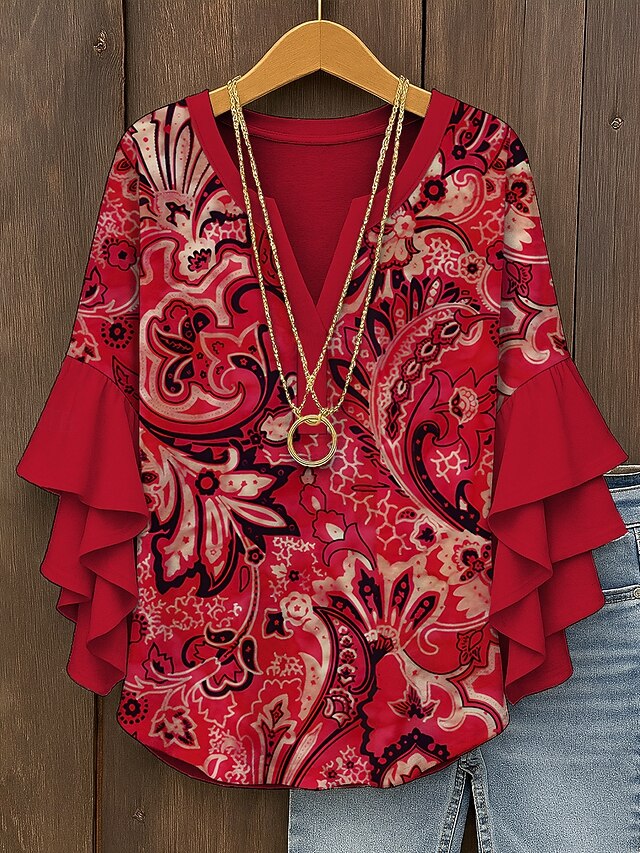 Why Choose Women's Blouse V Neck Graphic Paisley Elegant Bohemia Ethnic 3/4 Length Sleeve Regular Tops Daily Holiday Vacation Wear Ruffle Print Yellow Red Blue Purple Green Summer Spring Fall?