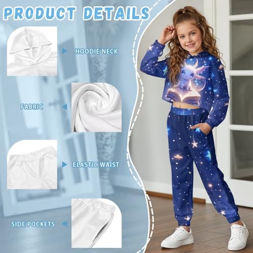WELLFLYHOM Girls Clothes Set 4-13 2 Pcs Pullover Cropped Hoodie and Pants Set Long Sleeve Hoodie Sweatshirt and Jogger Pant